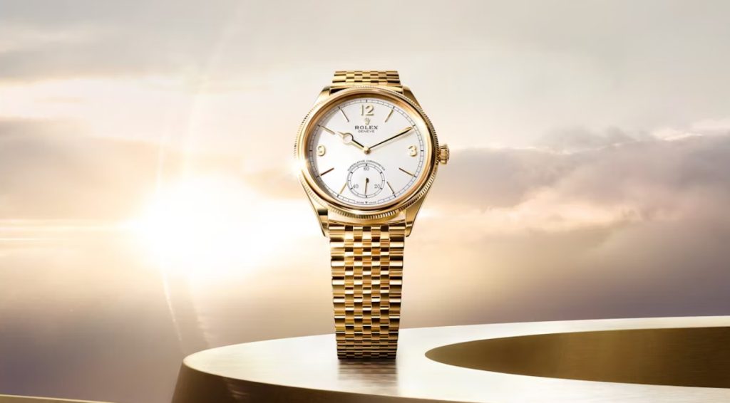 For Watches & Wonders 2025, Rolex pushes the 1908 into a new chapter with the debut of a newly developed fully polished seven-link “Settimo” bracelet in 18 karat yellow gold, marking a decisively dressy aesthetic. The replica watches UK retain its specs: 39mm case diameter, 9.5mm thickness, and sapphire display caseback, and is still equipped with in-house calibre 7140.